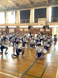 5年生の運動会練習がスタートしました。まずは、表現の練習からです。5年生は沖縄の民舞「エイサー」を中心に演技を構成しています。