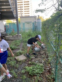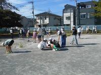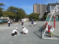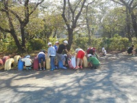 運動会に向けて、校庭の小石を拾って環境を整えます。