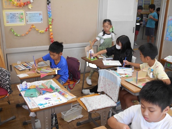 9月25日(木)4年生 図工 カクカク板を組み合わせたら