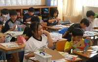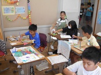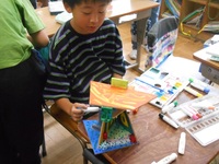 重ねて色を塗ってみたり、水滴を飛ばして模様をつけてみたり、いろいろな工夫が見られました。