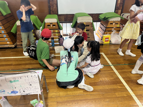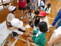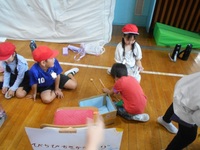 2年生が一生懸命作ったおもちゃを1年生は楽しそうに遊んでいました。