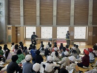 放課後に利用している子も多いようですが、普段は見られない場所も見学することができ、児童センターの方の話に興味津々に耳を傾ける姿が見られました。