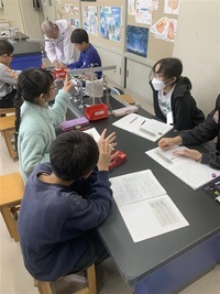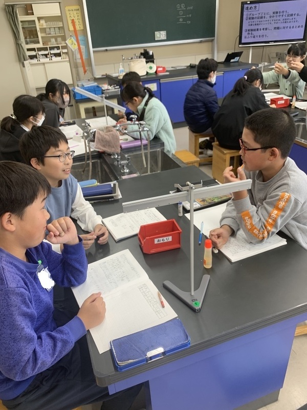 「左がこうなっている時に・・・」「だったら○○のときに、△△にならないとおかしくない?」「もう1回説明して」など、子どもたちがどんどん対話する様子が見られ、学習が深まりました。