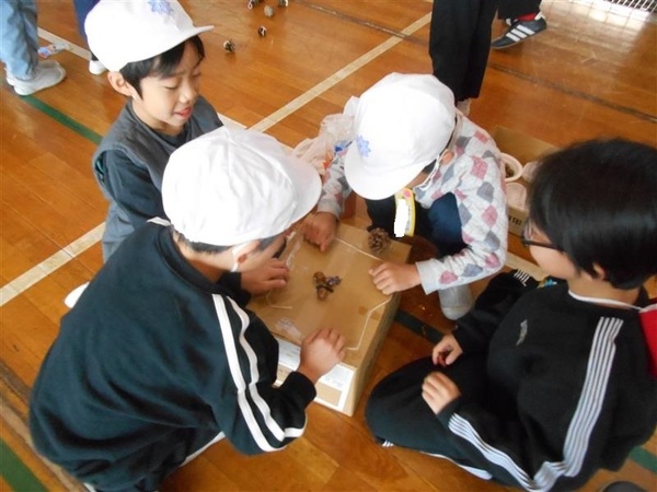 楽しみにしていた、「あきのおもちゃまつり」を行いました。友達と協力して試行錯誤しながら作った「秋のおもちゃ」は、どれもとても素敵でした。