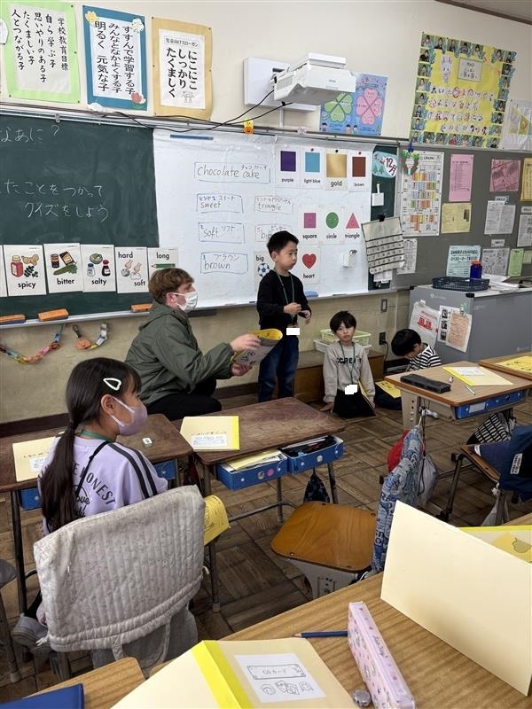 二学期に学習したことを使って、好きなフルーツやスイーツのクイズを出し合うプレゼンテーションを行いました。形や味、色などをヒントにして、ジェスチャーを交えながら、問題を出し合いました。