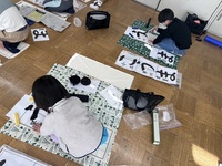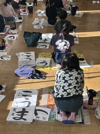今年の文字はこうま。普段の書写と比べて、床で書くことにドキドキしていたようですが、自分たちで道具を広げ、お手本を見ながら書く背中からは一生懸命さが表れていました!
