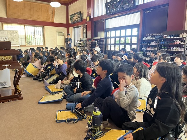 はじめに、読み聞かせしていただいた「水飲み龍」にまつわる長伝寺の中に入り、住職さんからたくさんの貴重なお話を聞くことができました。