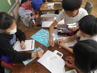 子どもたちが自分たちで考え、グループで協力して実験を行いました。