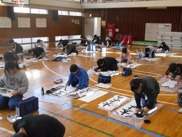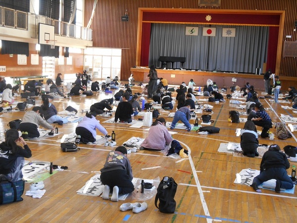 3学期に入り新年を迎え、気持ちを新たに全校で書き初めに取り組みました。