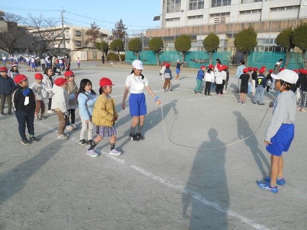 全校で大縄跳びを実施しました。