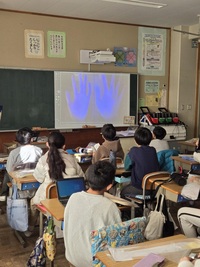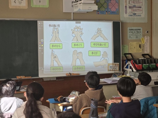 ウイルスを体に入れないために、丁寧な手洗いの仕方を歌とともに実践したり、石鹸を使ったときと使わないときの菌の数を視覚的に確認したりしました。