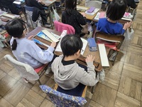 そろばんに初めて触れる児童が多いようで、練習問題を一つ解くごとに、正しい答えが導けているか一喜一憂する姿が印象的でした。