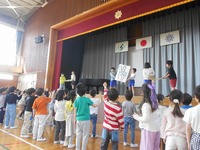 「1年生を迎える会」が行われました。2年生から6年生の児童が歌や言葉、あさがおの種のプレゼントをし、1年生を温かく迎えました。全校で行ったじゃんけんゲームは大いに盛り上がり、楽しい時間となりました。これからもみんなで仲良く学校生活を送っていきます。
